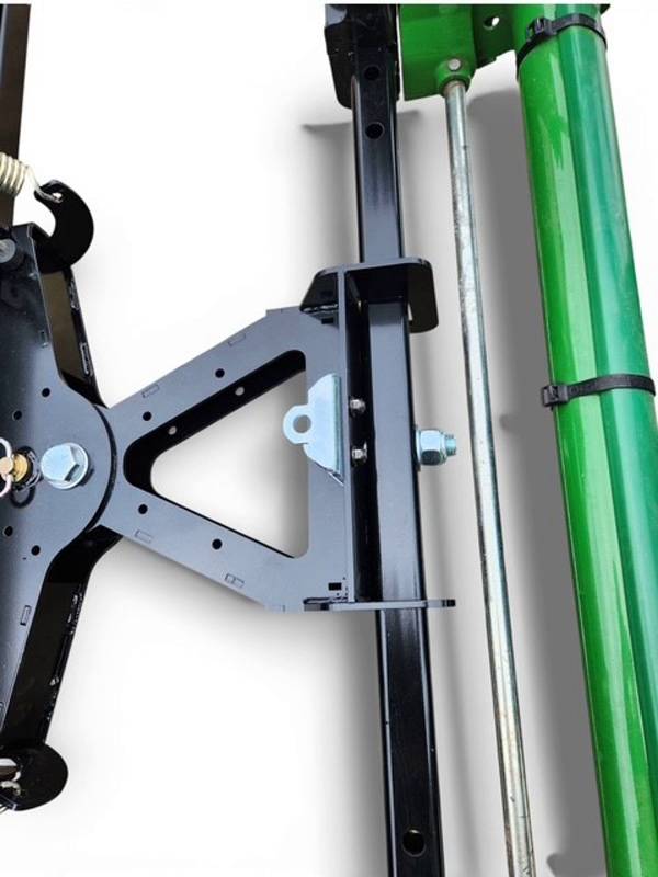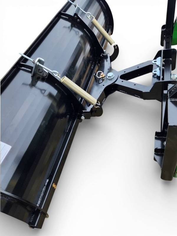Quickly attaches to your John Deer Front loader with JDQA (John Deer Quick Attach). Laser Cut from A36 steel in the USA. The mold board is made from 14 gauge steel and backed by a 1/4" steel frame. The plow swivel frame is also made from 1/4" thick steel. The center has a pivot allowing the ends of the plow to float 5 degrees. This allows the plow to follow the contour of the ground. The hooks and pins are Genuine John Deer parts, we just weld them to our mounting brackets to insure a perfect fit to your JDQA.